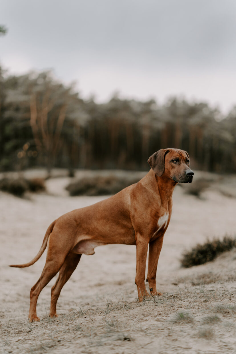 Seine Ridgebacktypische Power darf der lebenslustige Rüde als Reit-Begleit-Hund, stundenlange Spaziergänge durch die Heide & ebenso beim gelegentlichen Ralley Obedience und Hoopers ausleben.